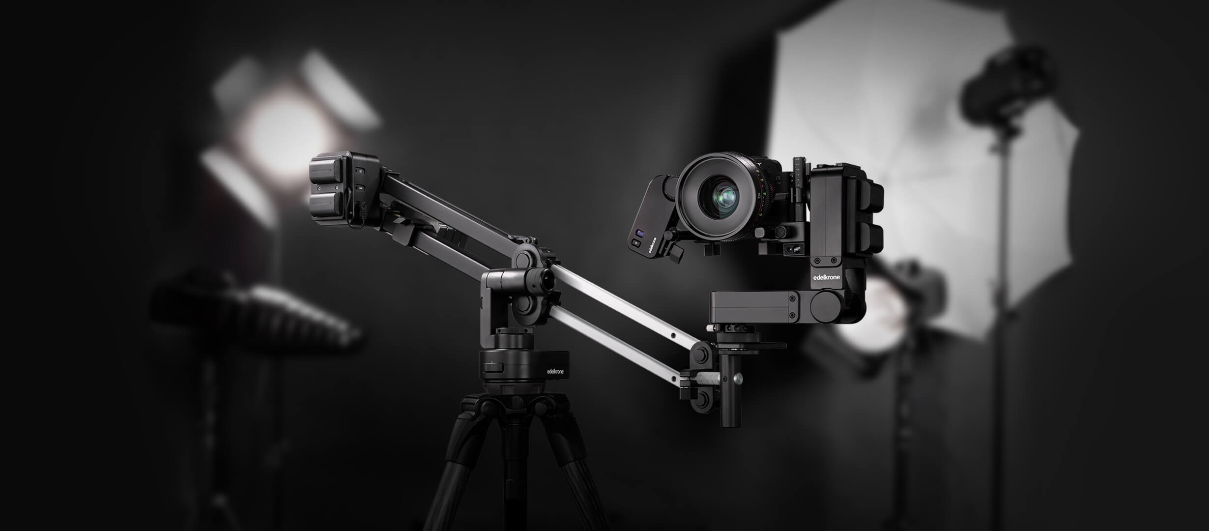 Pan PRO is capable of carrying heavy professional cameras, as well as the entire JibONE setup. Similar to all edelkrone products, Pan PRO features a portable, compact design.
